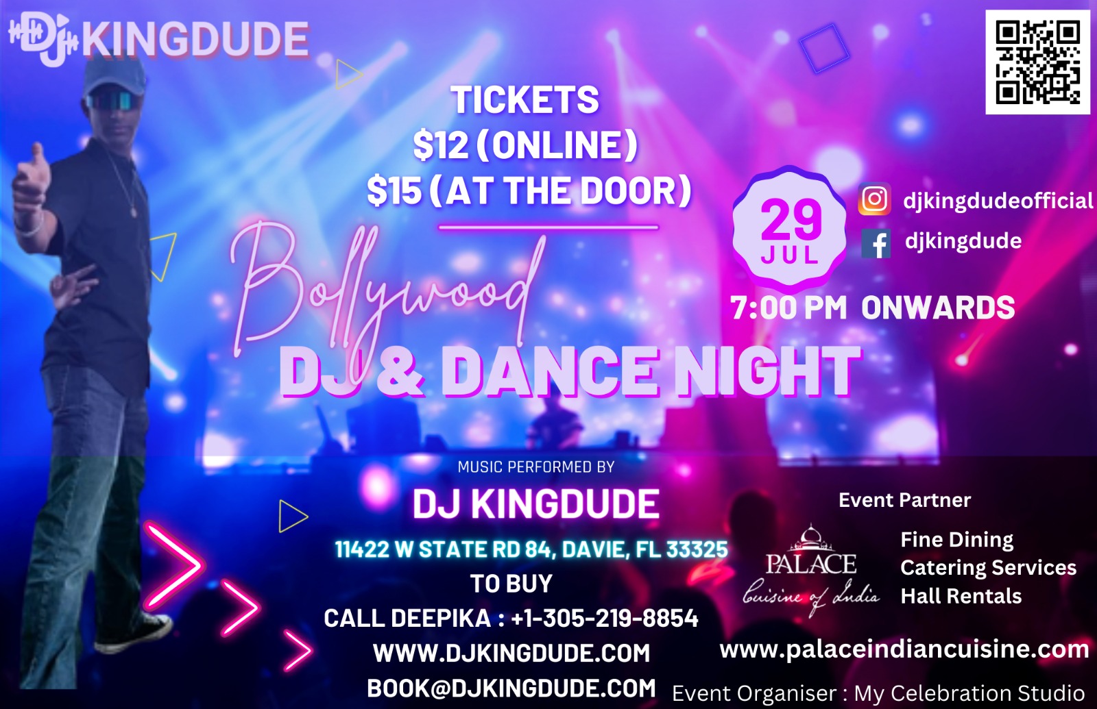 Join us on July 29th for the electrifying DJKINGDUDE Bollywood Dance Night event ! Get ready to immerse yourself in the vibrant world of Bollywood music, dance, and entertainment like never before. This is an experience you won’t want to miss! Limited Tickets So Hurry up.